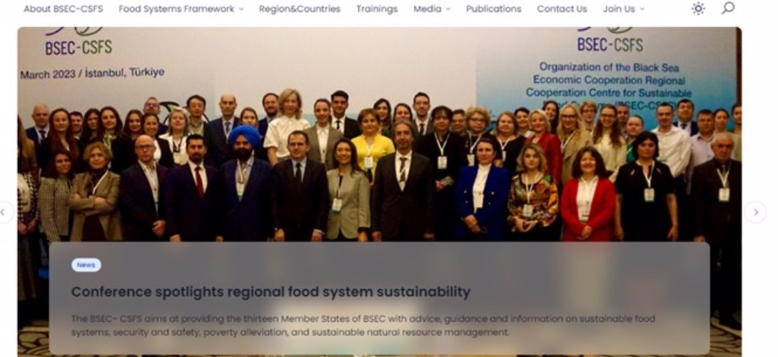 26 Mayıs 2023, Ankara - Karadeniz Ekonomik İşbirliği Örgütü (KEİ) Sürdürülebilir Gıda Sistemleri Bölgesel İşbirliği Merkezi (KEİ-SGSM / BSEC-CSFS), KEİ bölgesinde gıda sistemleri dönüşüm gündemini teşvik etmek ve gıda sistemi profesyonellerinden oluşan bir ağ kurulmasına katkıda bulunmak amacıyla özel bir web sitesini yayına sundu. KEİ-SGSM internet sitesi, Merkezin faaliyetleri hakkında paydaşları bilgilendirecek, gıda sistemleri dönüşümü için bir platform görevi görecek ve bölgedeki gıda sistemleri ve gıda güvenliği, başvuru kaynakları, kılavuzlar ve üye devletler ile paydaşlardaki durum hakkında bilgilendirme sağlayacaktır.